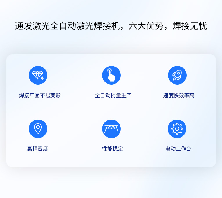 通發(fā)激光TFL-180VI小五金全自動(dòng)激光焊接機(jī),廣泛適用手機(jī)五金激光焊接,不銹鋼螺柱激光焊接,各種小五金的激光焊接加工。采用精密運(yùn)動(dòng)控制器和精密XY工作臺(tái),可實(shí)現(xiàn)大多數(shù)0.5mm以內(nèi)料厚五金產(chǎn)品的二維平面焊接。效率高,性能穩(wěn)定,性價(jià)比高。