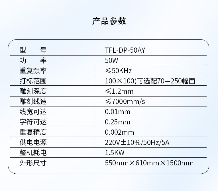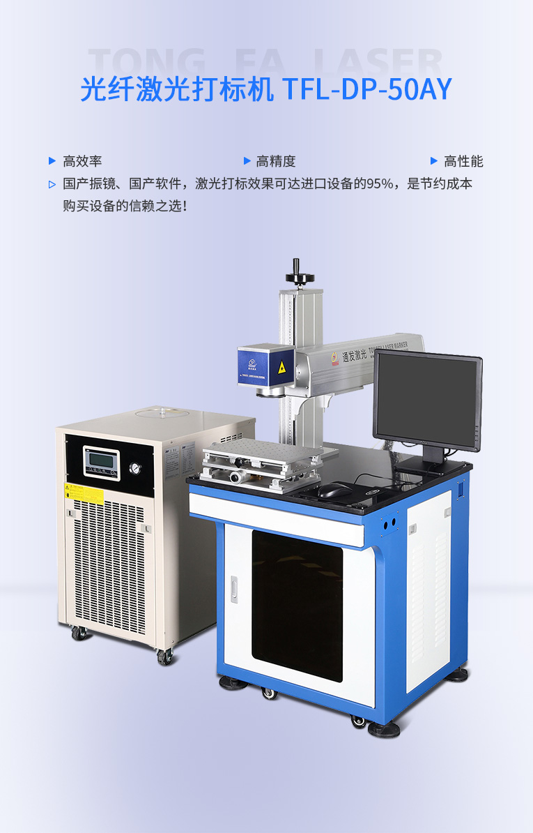通發(fā)激光研發(fā)TFL-DP-50AY激光打標機,可針對各種金屬,塑膠進行激光打標加工,本激光鐳雕機配置成熟國產激光器,國產振鏡、國產軟件,性價比高,是普通金屬打標機的好選擇!!!