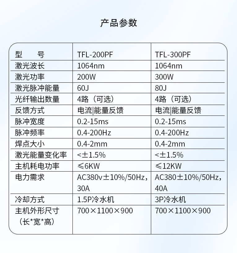 通發(fā)激光TFL-300PF光纖激光焊接機,精密能量反饋控制模式,穩(wěn)定性<3%,經(jīng)過光纖優(yōu)化獲得卓越的光束質量,適合1mm以下精密手機五金激光焊接、廚衛(wèi)家電五金不銹鋼精密激光焊接加工。